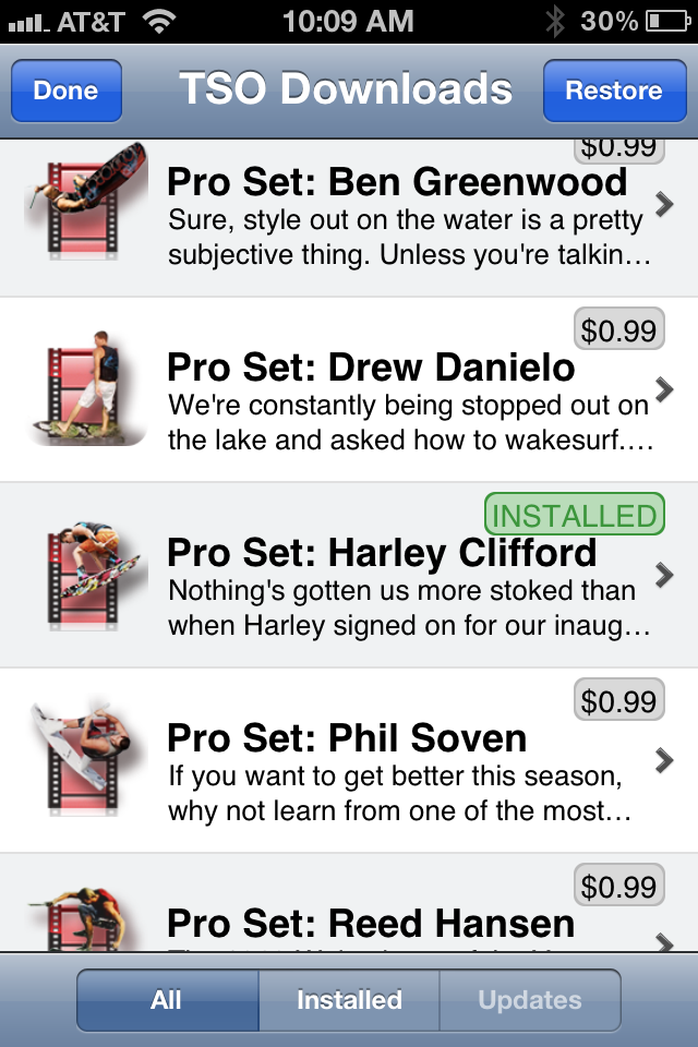 Users can now download the version 1.0 trick videos for free or upgrade to the new Premier videos featuring TSO rider Corey Bradley with multiple camera angles and voice instruction on every trick.  Four sample Premier vids are included in the free download – Getting Up, Ollie, HS BS 360, and Tootsie Roll.  Also available in TSO’s In App store are 10 trick Pro Sets from Harley Clifford, Phil Soven, Ben Greenwood, Reed Hansen, and Drew Danielo with more riders set to drop soon, as well as a ‘Grabs’ Pro Set from Corey Bradley.